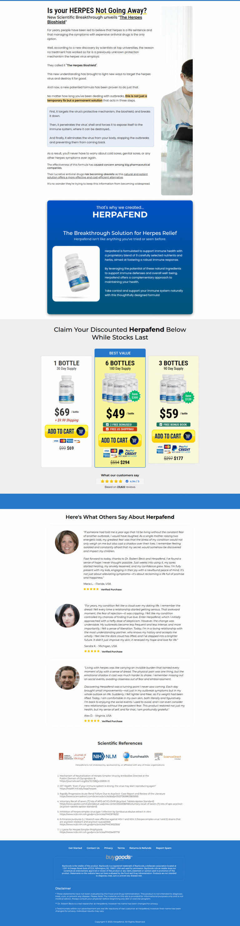 What you’re seeing above in the image is the official website of Herpafend. Unfortunately, many people fall victim to scams when purchasing Herpafend because they don’t use the official website to place their order.